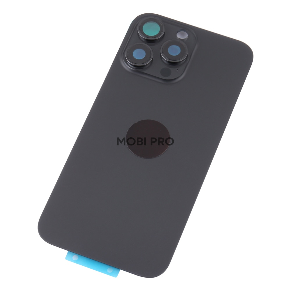 —Задняя крышка для iPhone 16 Pro Max в сборе со стеклом камеры Черный (стекло, монолит, MagSafe, логотип) - Премиум