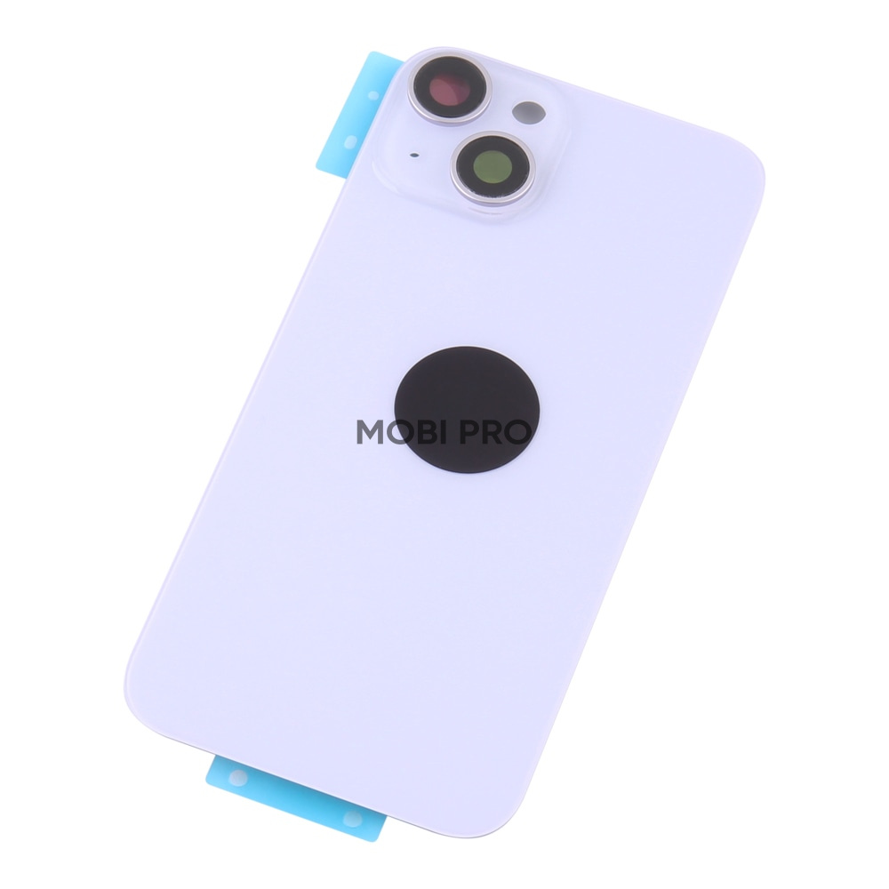 Задняя крышка для iPhone 14 в сборе со стеклом камеры Фиолетовый (стекло, монолит, MagSafe, логотип) - Премиум